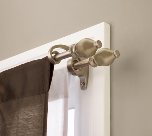 - Diverge double drapery rod kit includes two 5/8-inch (1-1/2 cm) diameter telescoping rods, four decorative finials, decorative double-rod mounting brackets, and installation hardware