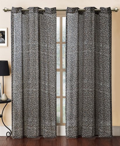 Some big cats never sleep because they inspire the imaginations and desires of the human spirit. Bring the power and majesty of the arctic tundra home with the exciting Snow Leopard Print Sheer Panel. The intricate pattern of the snow leopard is printed on a machine washable Geroget panel. This easy care curtain is 100% Polyester and measures 57” by 84” and is sold in single units.