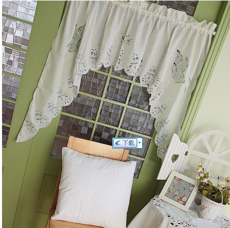 It is perfect window treatment for your house.The scarf has romantic Lace made and elegant designed. The color is white base with blue embroidery decorated. Very romantic and sensational!