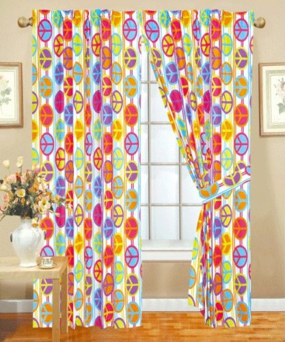When my niece (8 years old) opened this item for Christmas she was so excited! It was exactly what she asked for. Curtains with peace signs. I was very pleased with the timely delivery and the item was packaged well. The curtains are very colorful and are certain to brighten any room.
