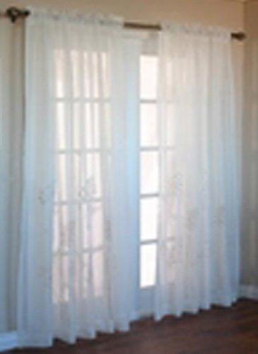 Add instant elegance to your home with our Hydrangea Sheer Panels. Delicate blossoms float across sheer, textured panels. Exquisite details include dimensional, appliqued petals accented with embroidered centers, stems, and leaves. Easy care polyester. Choice of Ivory or White. Panels (sold singularly): 54"W.