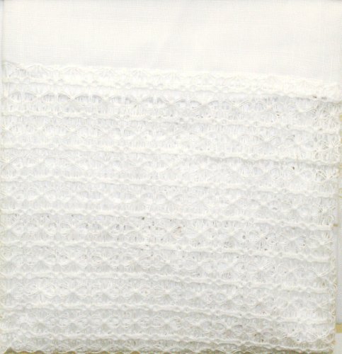 This simple and sophisticated soft faux linen and daisy chain lace horizontal banded panel offers light filtering and a touch of class to you windows.