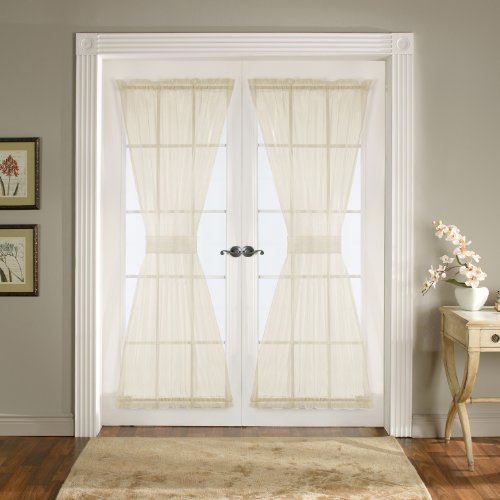 Sheer door panels. Tiebacks included. Measured from top of the upper rod pocket to the bottom of the lower rod pocket, exclusive of headers. Rod pocket slides onto curtain rod for installation.