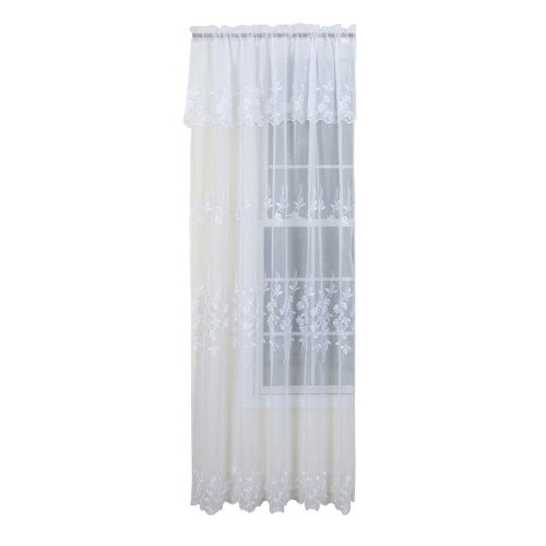 Renaissance Ava is an traditional embroidered sheer panel with an attached valance. The panel comes in a wide width 55-Inch by 84-Inch size with an attached valance that has a 17-Inch drop. The panel comes in 6 colors that include beige burgundy, gold, mocha, sage and white. The panel has a rod pocket construction for easy hanging. Easy care machine wash and line dry