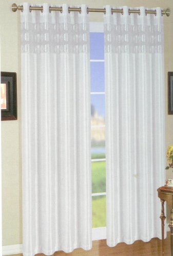 Sally Textiles introduces the new Natali line of curtains. These curtains integrate sheer and solid material into one curtain. The top is designed with see-through sheer material with circular designs embroidered on. The rest of the curtain is a faux silk solid color. These curtains add the finished look to your home. They are a very unique and innovative line of curtains. Natali curtains provide a variety of wide range colors that will make you fall in love with the perfect curtain for your home adding elegance, uniqueness, and style. Choose the one that best fits your home. Buy this affordable and high-quality curtain to decorate your home and windows and block out the light. Your new curtains are perfect for adding a refreshing and complete look with intricate designs. ONE panel per package. 58 inches wide X 84 inches long. Care instructions; machine was cold, gentle cycle. Do not bleach, dry on low setting, use cool iron.