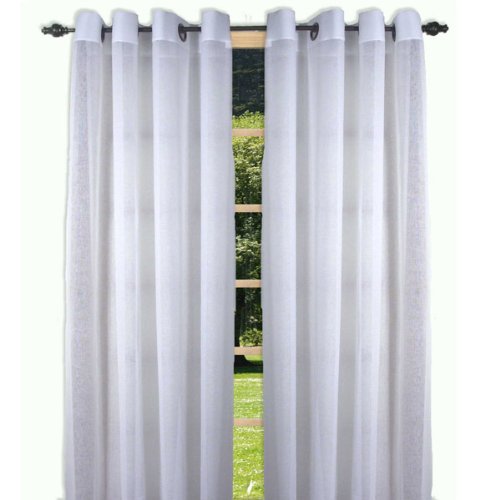 Semi sheer grommet top curtain panel available in White, Taupe, Sage. 56" width ; 63" long, 84" long, 96" long. 100% polyester.