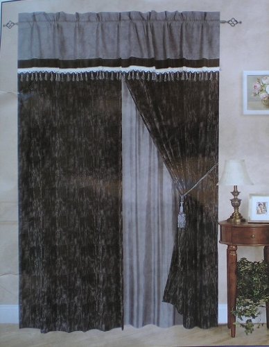This is very nice high quality micro Suede and sheer material window curtain / panel / drape with attached valance and sheer lining.