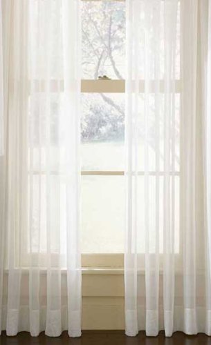 The white polyester sheer window drapery panel will add a touch of elegance to your babies nursery. The panel measures 55 inches x 84 inches including a 1.5 inch valance rod pocket. Care instructions: Machine wash cold in gentle cycle. Line dry and iron on lowest setting as needed. The sheer window panel is sold 1 panel per package