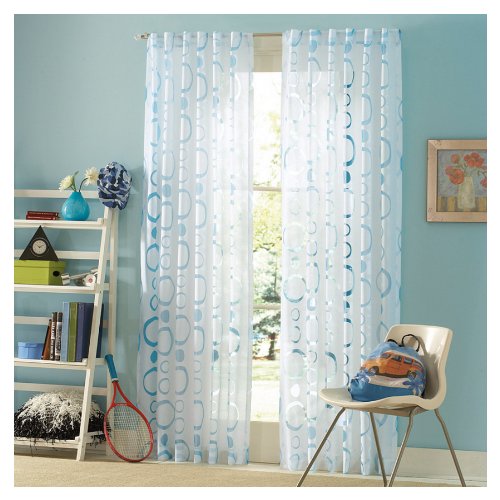 - Frame your window with this aqua, burnout circle design on white semi sheer ground to complete the look of the well dressed window