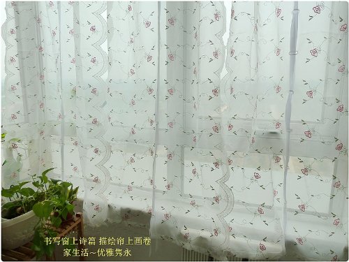 This auction is for an one piece beautiful pull up cafe curtain. It would be the perfect window treatment for your house. The curtain is decorated with embroidery pink flowers and green vine in white sheer voile. You can adjust the height by pulling up the ribbon tie. Romantic and sensational, we at Victoria's Deco think that that they will be the perfect window treatment for your home. If the size is too small, extra panels can always be bought. They come with pockets and are ready to hang. If you're purchasing from outside North America, please contact Victoria's Deco beforehand to arrange for shipping.