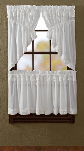 Sheer curtains in classic white with a ruffled trim add a soft, frilly look to your favorite room. Sheers are unlined, creating a light, sunny ambiance.