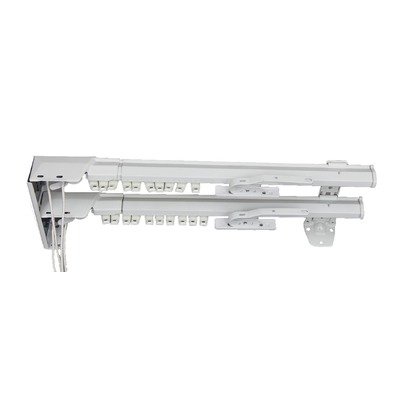 3213-661 Size: 66" - 120" Features: -Heavy duty double rod.-Fits single window for 2 layers: sheer and drapery.-When facing the window, drapery opens from right side and stacks on left side.-Comes with one end bracket for cord control side and additional support brackets as needed for opposite end and center.-Minor adjustment capable.-Designed for use with pinch pleat draperies.-High quality smooth traverse operation; superior slide fit between inner and outer rod.-Rod clearance about 1.63''.-Space between 2 rods about 1.63''.-Number of sliders on each rod: 30'' - 48'' (10 sliders), 48'' - 84'' (20 sliders), 66'' - 120'' (30 sliders), 84'' - 156'' (40 sliders). Includes: -Brackets and hardware included. Options: -Available in 30'' - 48'', 48'' - 84'', 66'' - 120'' or 84'' - 156'' sizes. Collection: -White Traverse collection.