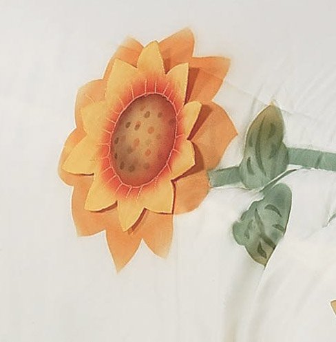 I was so surprised when I opened this package. For the money especially, it is a deal rare to find in these times. The curtains are beautiful, just beautiful. They have a built in privacy panel, and the sunflowers are appliqued on to the curtains. I would have expected something this beautiful and high quality to cost much, much more than I paid for them. I also bought the matching comforter and shams, they are also great quality and more than fair price. If you like sunflowers, you should check this out.