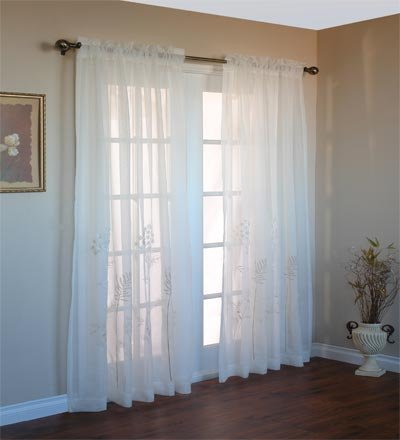 Add elegance to your windows with these beautiful Hydrangea Sheer Panels. The delicate embroidered hydrangeas add interest and dimension to the classic semi-sheer fabric. You'll love the airy, flowing style that offers some privacy while still letting in filtered light. 100% polyester; dry clean. Imported. Sizes: 54"W in lengths listed below- 3" rod pocket with 2" header, 1/2" side hems and 3" bottom hem. Shipping: Allow 1-2 weeks for delivery.
