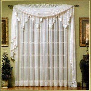 Stripe sheer curtains embellished with silky satin. (Scarf and Ascots not included). Features: Panel size 60"W x 72"L. Easy care: Machine wash, cold water, no bleach. Tumble dry on low heat, no or low iron on low temp if desired, 100% polyester.