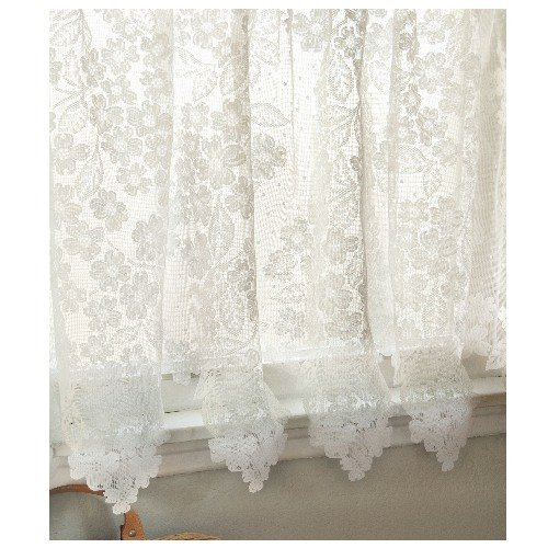 Heritage Lace Dogwood 55-Inch wide by 30-Inch drop White Tier. These intricately-detailed window dressings have a lovely all-over motif of stylized dogwood blossoms against a sheer lace background. Machine wash. Made in the U.S.A.