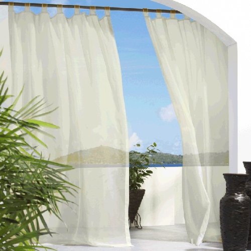 Escape Tab Tob Curtain Panel will liven up your indoor or outdoor spaces with a sense of airiness and beauty Made from solid color polyester "treated" voile, the indoor/outdoor curtain panel is water-repellant and fade- and mildew-resistant Featuring Eight Hook & Loop tabs for easy hanging; this panel has ¼ inch side hems and ¼ inch bottom hem Tabs can be used as 2.25-3" tabs - therefore panel length varies slightly This panel is 54" wide and available in 2 lengths: 84" and 96" Material: 100% Polyester Care Instructions: Machine Washable Sold by the Panel To achieve the look in the picture you will need 2 panels Also available in White Expedited shipping is not available on this item Click here for Measuring Guide