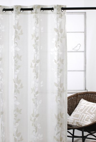 Ferndale is a beautiful opaque white window panel designed with cascading leaf clusters. Some of the leaf clusters are outline in a camel color, while others are created with the 'burn-out' technique. Window panel dimensions are 52x95. Ferndale is hung with decorative grommets.