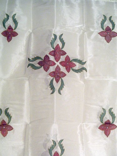 Here is vibrant & stunning work of craftsmanship that combines exquisite shimmering White Organza Tissue Sheer fabric with gorgeous floral embroidery to create a lovely pair of drapes / curtains.Each panel of this glittering & sparkling shimmering pair is 90"L X 42"W with 4" tabs for rod pocket. The highlight of the pair is the floral embroidery in Gold, Burgundy and Green - the embroidered patterns on tissue Organza create a stunning effect. Add an airy & delicate feel to your room with this pair of Organza lightweight Sheer curtains. The fabric offers a perfect combination of privacy as well as filtered sunlight and ventilation.The sparkling embellishments will lend a spectacularly ethnic look and add style to your room. Go for a dramatic makeover of your windows and this pair would become a conversational piece of art. You'll have to just stare at this dramatic piece for hours to believe the unbelievable!A must have in any season for all ethnic savvy ones. This is a rare beauty not to be missed, a genuine collector's item & the result of masterly workmanship.Don't miss this great deal. Guaranteed you'll love it or your money back!